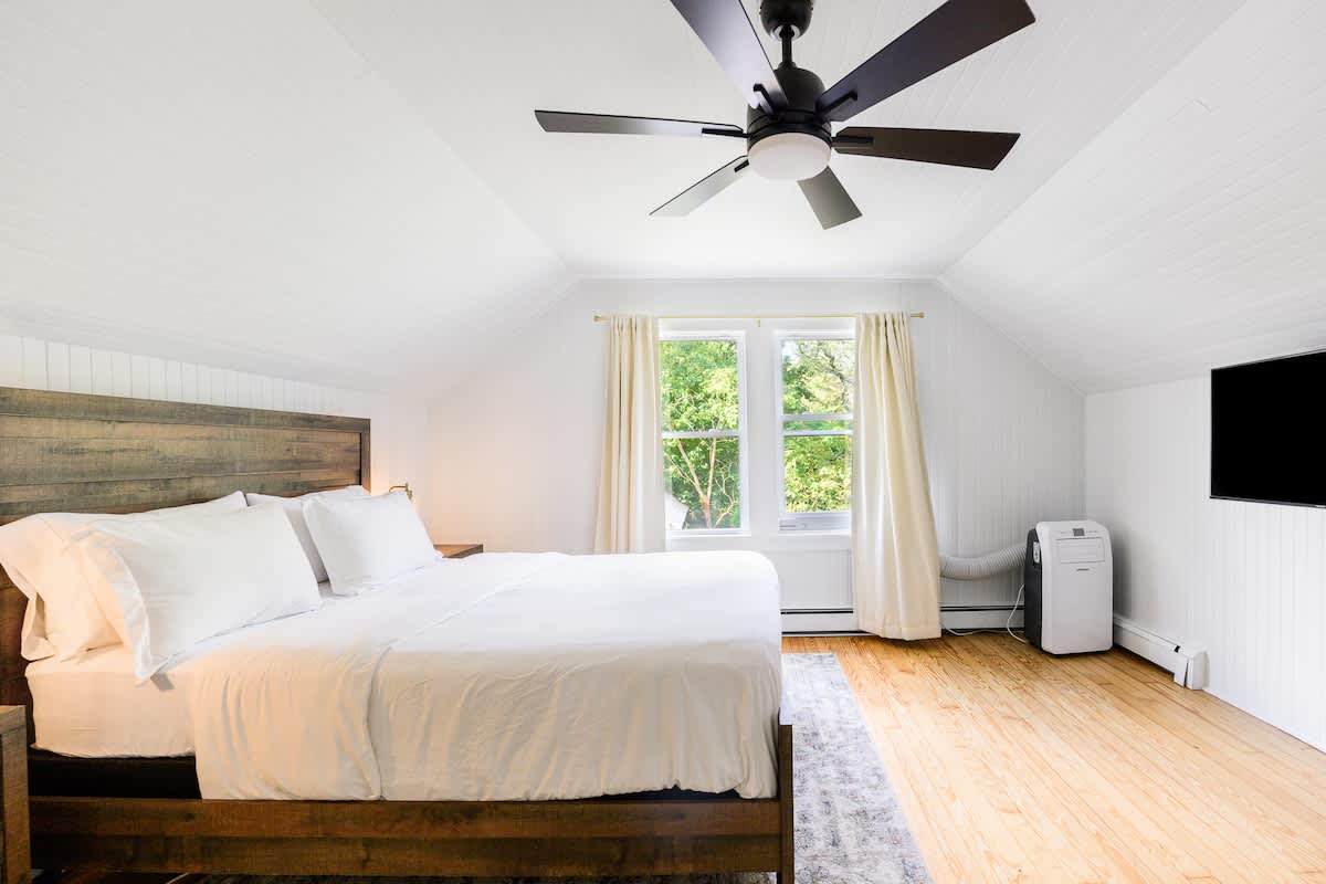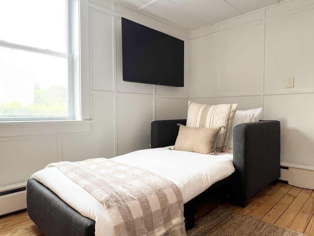 Escape to our cozy cottage retreat! Nestled amidst nature, it features a spacious master bedroom with queen bed, a playful bunk room with twin beds, plus a pull-out sofa twin-bed chair and a pull-out sofa full-size bed. With room for 7, enjoy family bonding, starlit nights, and relaxation.…